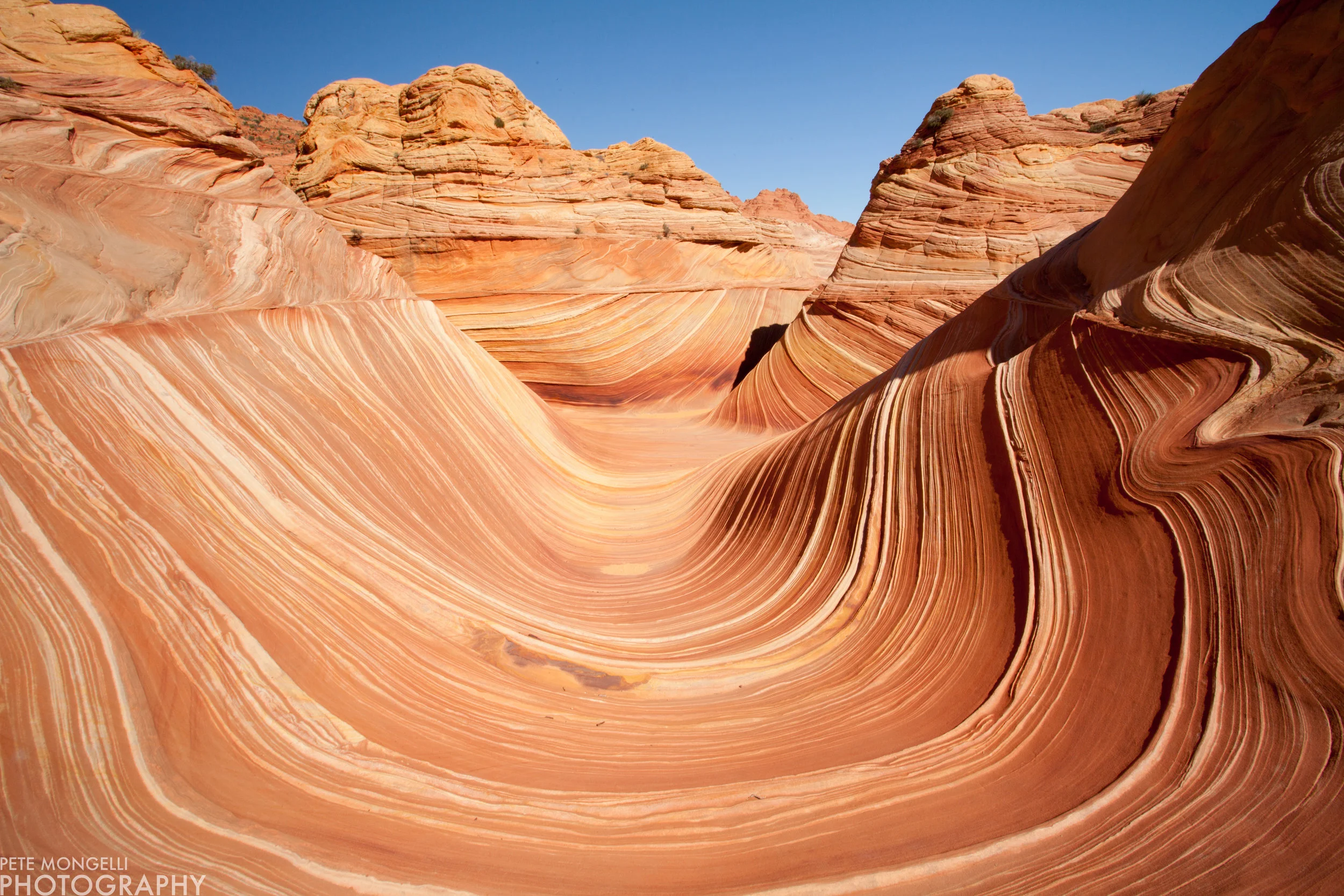 The end of a 3.5 hour hike through the desert and slick rock on the Arizona / Utah border brought it all into view. The months (years, actually) of entering the Wave lottery finally landed us backcountry permits to visit this special place. It's a difficult hike in 100+ degree temperatures and only a handful of visitors are allowed to attempt it each day.