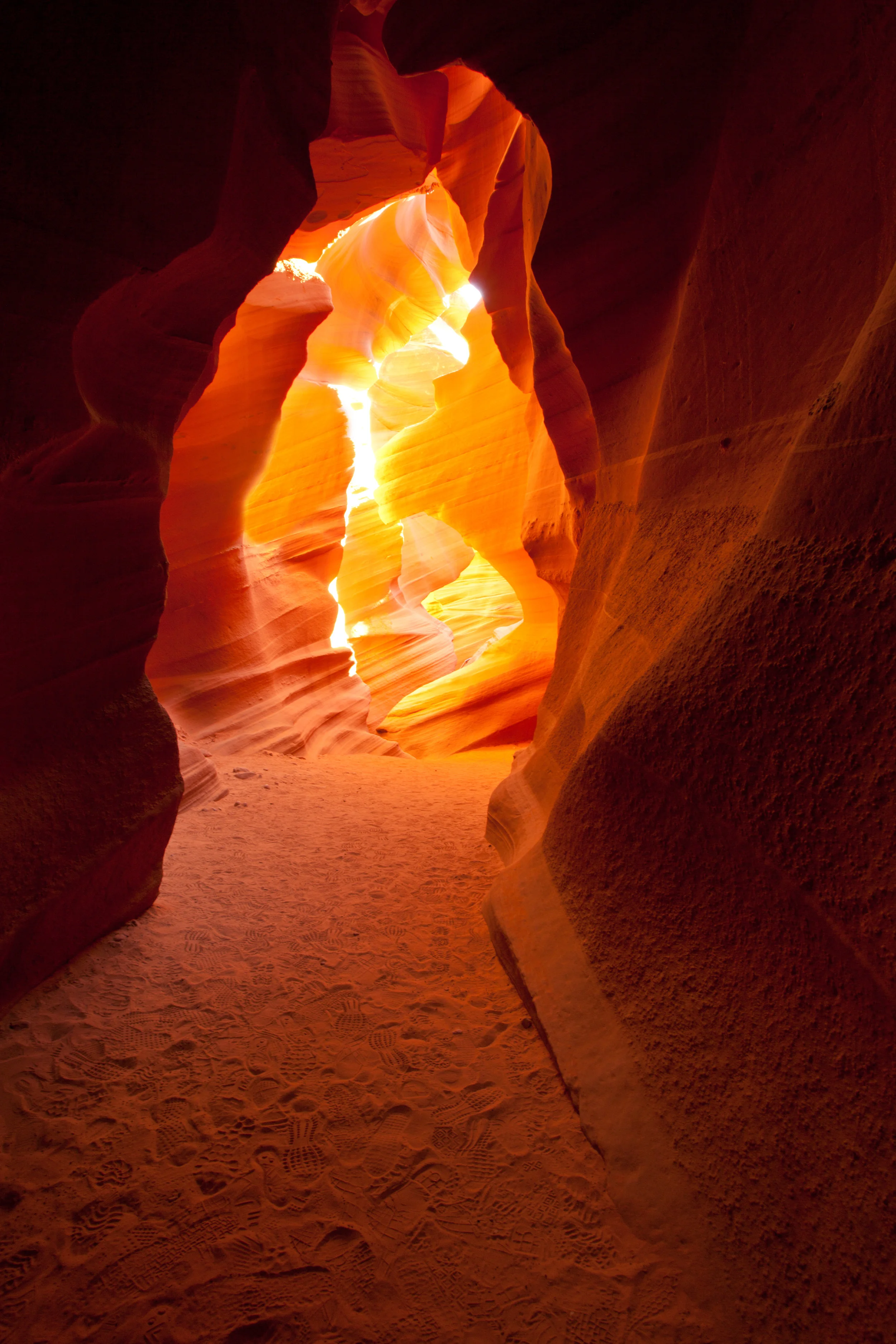 Antelope Canyon is a place of such unworldly light variations that it's hard to truly take in all at once. It can also make photography very difficult. Areas in direct sunlight are bathed in a fiery red-orange, while the cool shadows reflect a near purple glow. The canyon walls can be a bit tight and climbing from some angles can be challenging, but certainly traversable.