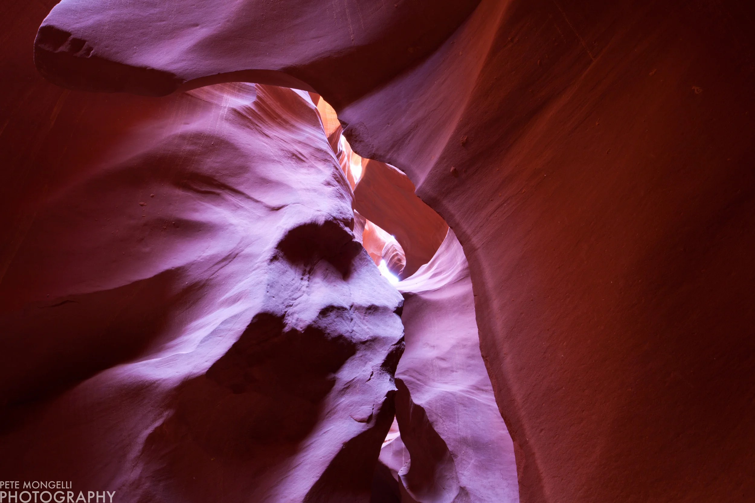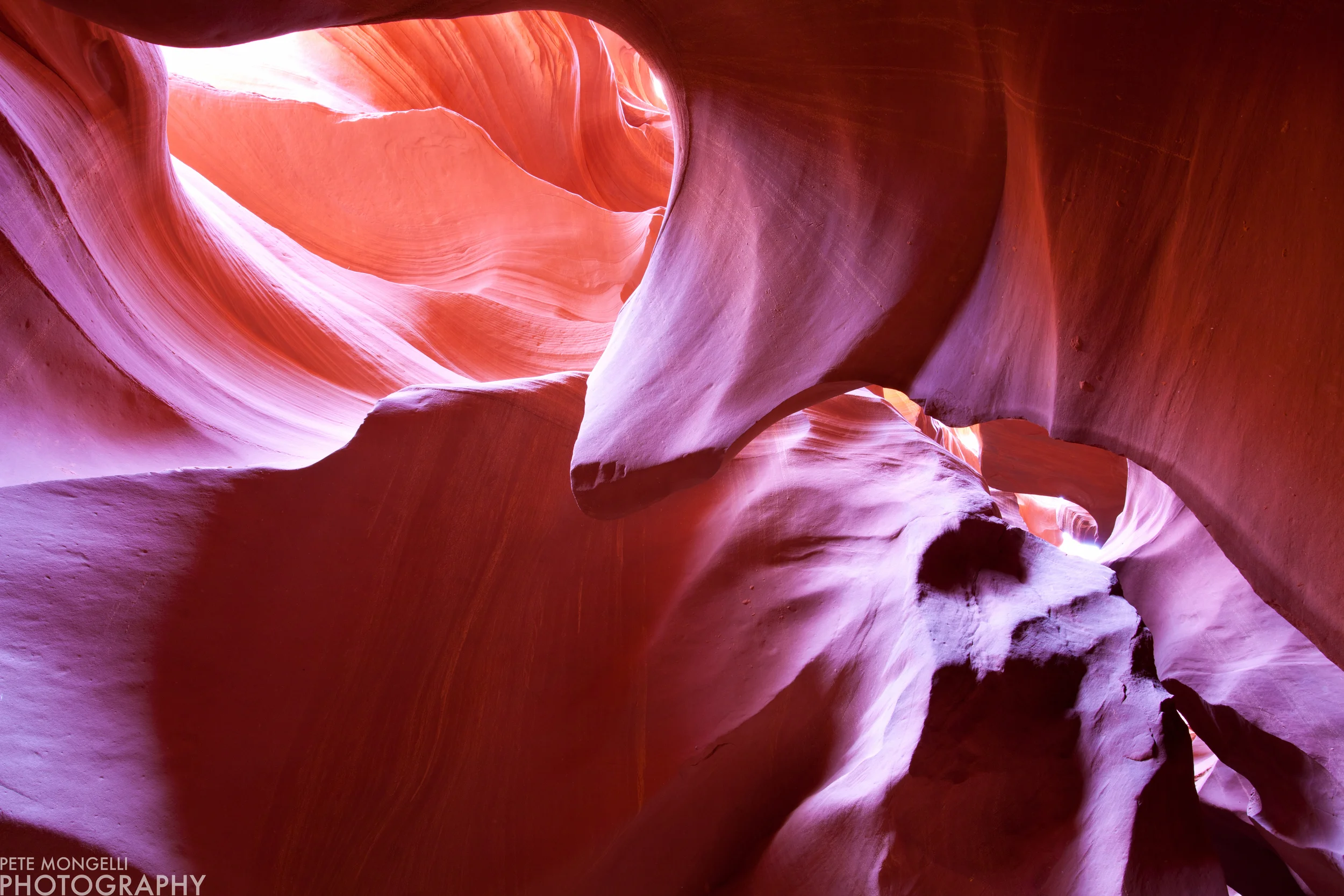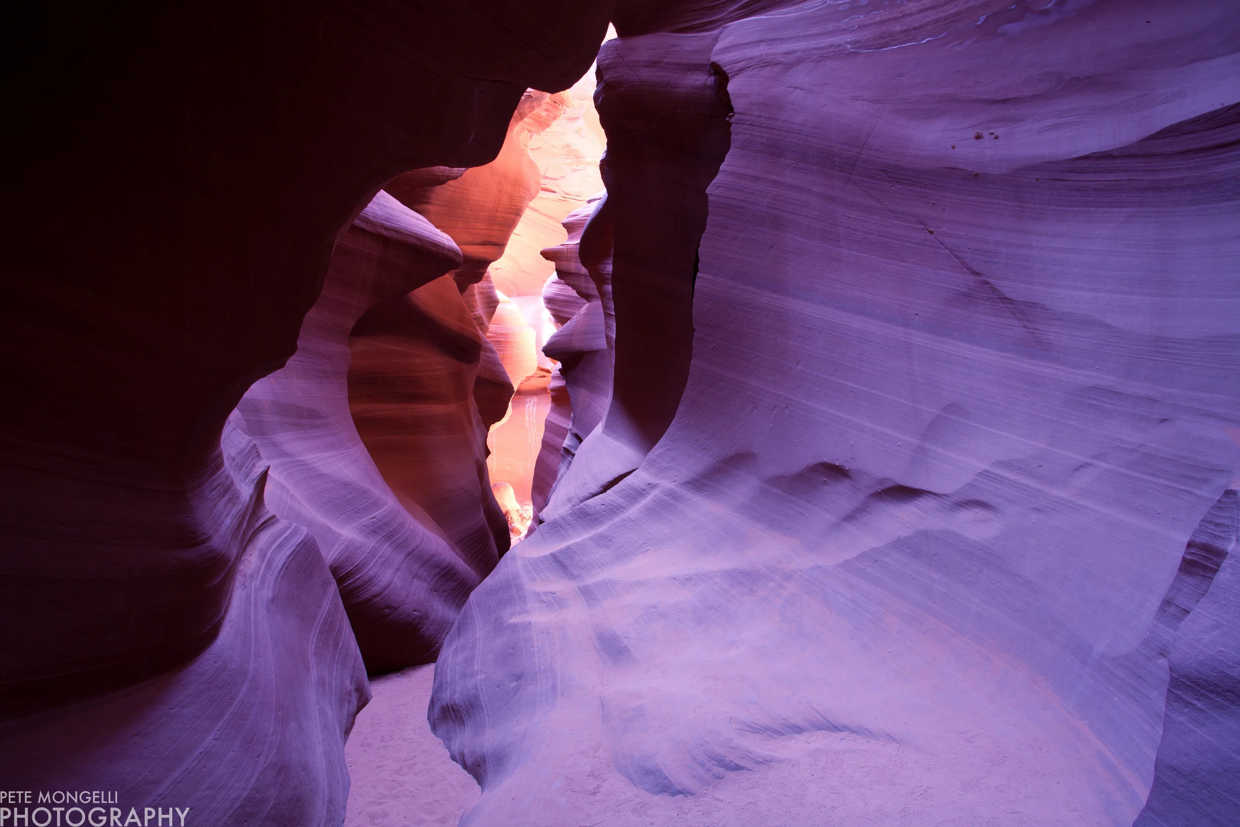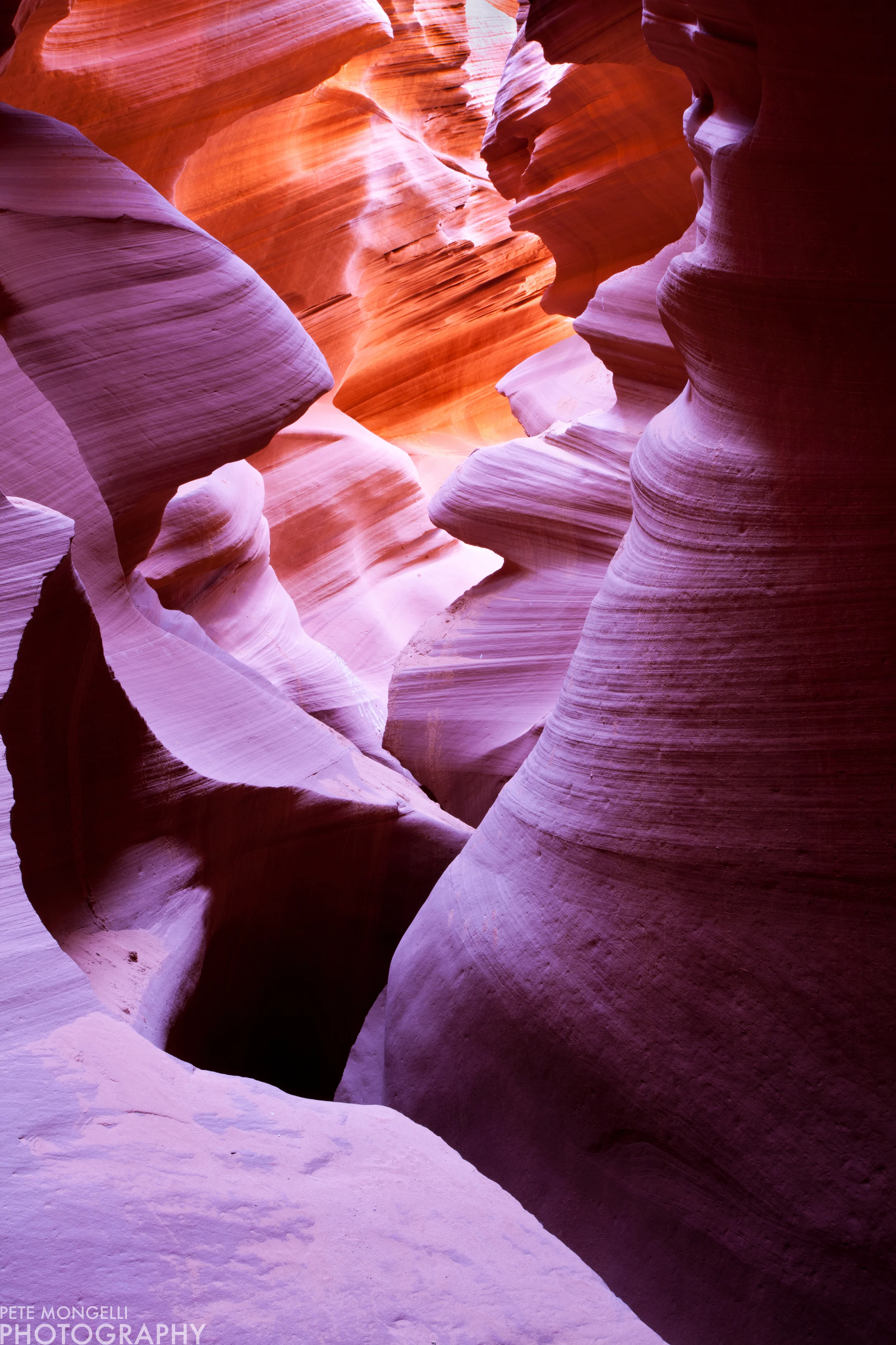 Antelope Canyon is a place of such unworldly light variations that it's hard to truly take in all at once. It can also make photography very difficult. Areas in direct sunlight are bathed in a fiery red-orange, while the cool shadows reflect a near purple glow. The canyon walls can be a bit tight and climbing from some angles can be challenging, but certainly traversable.