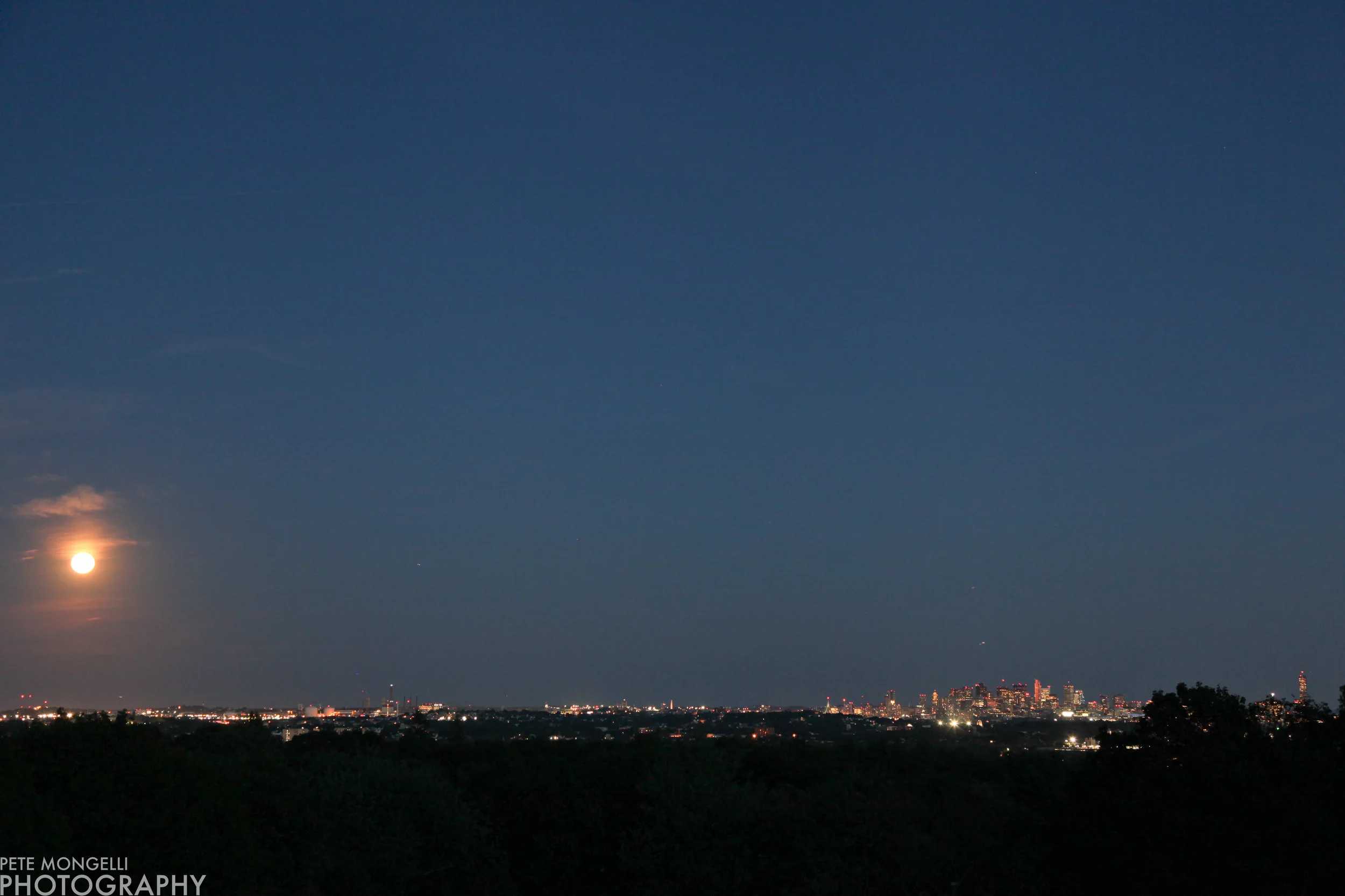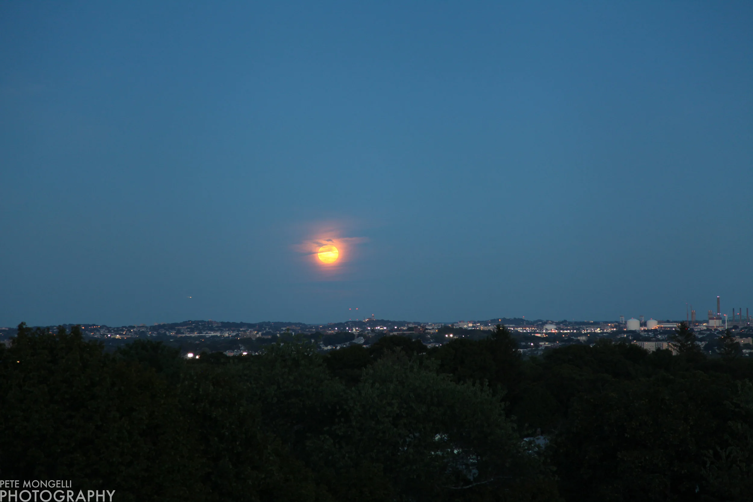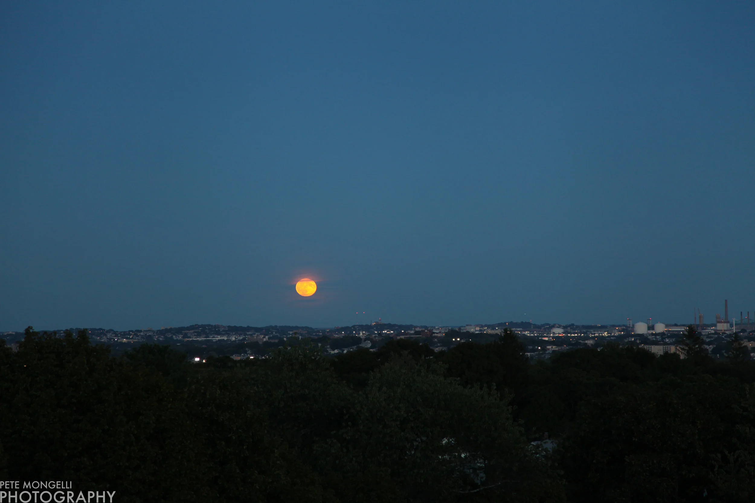 The Harvest Moon this year was on September 16th, when the moon is closest to the earth. I was on the way home from work and decided to stop at a location with a view to the east to frame the Boston skyline.